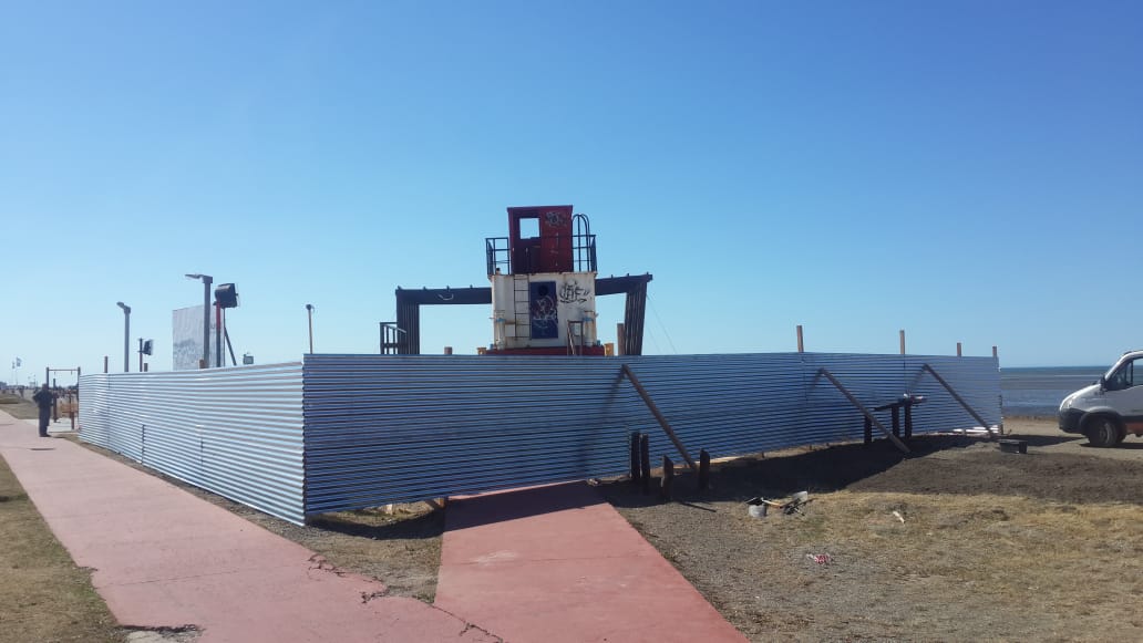 El Barquito Azul, hoy emplazada en la costa marítima, perteneció a YPF y era usado para trasladar cargas de barcos más grandes que no podían ingresar amarrado en el muelle viejo.