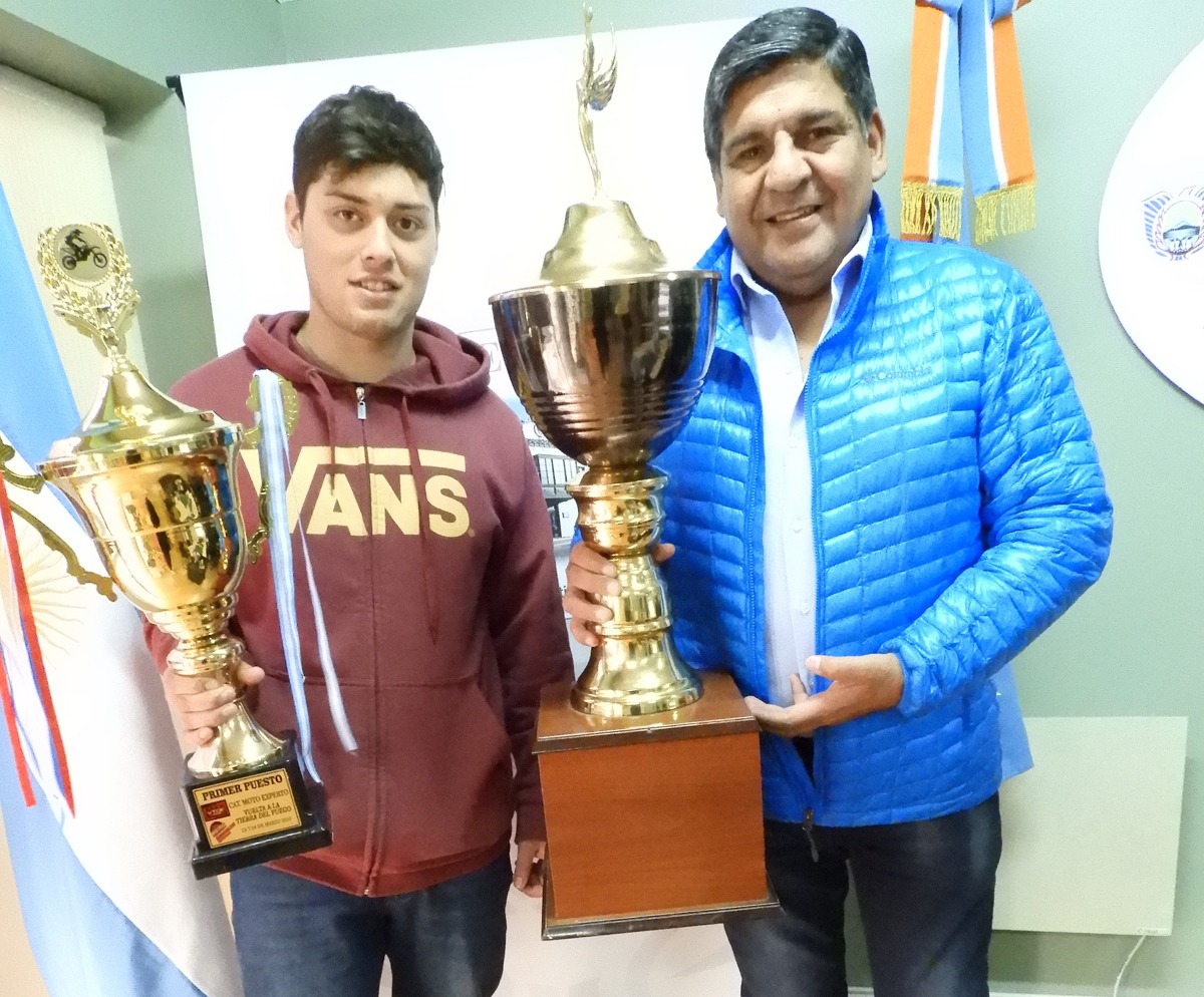 Río Grande.- En la Delegación de la Legislatura de Río Grande, El Vicegobernador Juan Carlos Arcando recibió al joven, representante del motociclismo y ganador de la última edición, de la Vuelta Tierra del Fuego 2019, Maximiliano Aguilar, quien contó al mandatario provincial sus vivencias y experiencias, señalándole que “desde el año 2013 me inicie en campeonatos en duros y seis vueltas, en Cuesta del Gallo, Villa Tehuelche y en El Calafate, en todos con importantes puestos en los podios”.