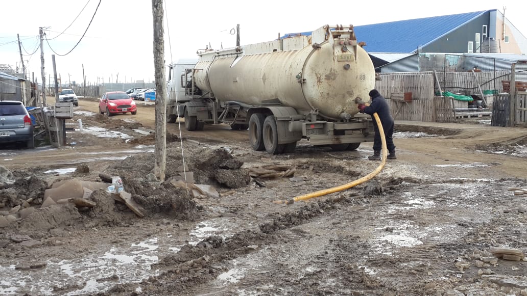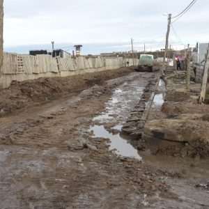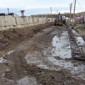 Mart 28/05/19.- Ante numerosas quejas de vecinos de los barrios 10 de Noviembre y El Milagro, lugar donde el IPV lleva adelante obras que tiene a su cargo, el Municipio de Río Grande tomó intervención en la zona con maquinaria y personal para mejorar las calles y retirar el agua acumulada en la calzada.