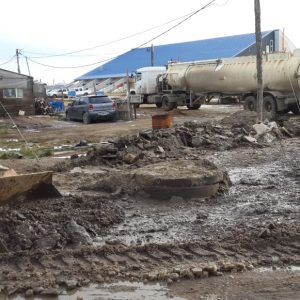 Una vez arribados al lugar, los servidores públicos municipales pudieron constatar el estado de calles con barro y hielo que los vecinos debían sortear para acceder a sus hogares.