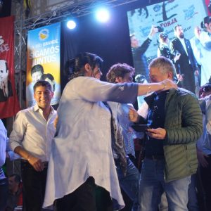 Por su parte el candidato a gobernador tuvo un discurso muy critico tanto para el gobierno provincial, como el nacional, habló de «los miles de puestos de trabajo perdidos, tenemos que lograr revertir esta situacion, esa será una de nuestras banderas, que muchos abandonaron, los que hoy critican al gobierno nacional, aplicaron el mayor ajuste que se recuerde en los últimos años. No se les cae la cara de vergüenza, no se puede acompañar a quienes congelaron salarios, descontaron salarios durante 3 años y persiguen trabajadores. Mientras se cerraban lineas en las fabricas, comercios y pymes, organizaban grandes encuentros de futuras inversiones que nunca llegaron, dándole la espalda a los vecinos, hoy pueden repartir todo, los elementos que quieran pero no pueden repartir es dignidad y empleo porque la vendieron y entregaron».
