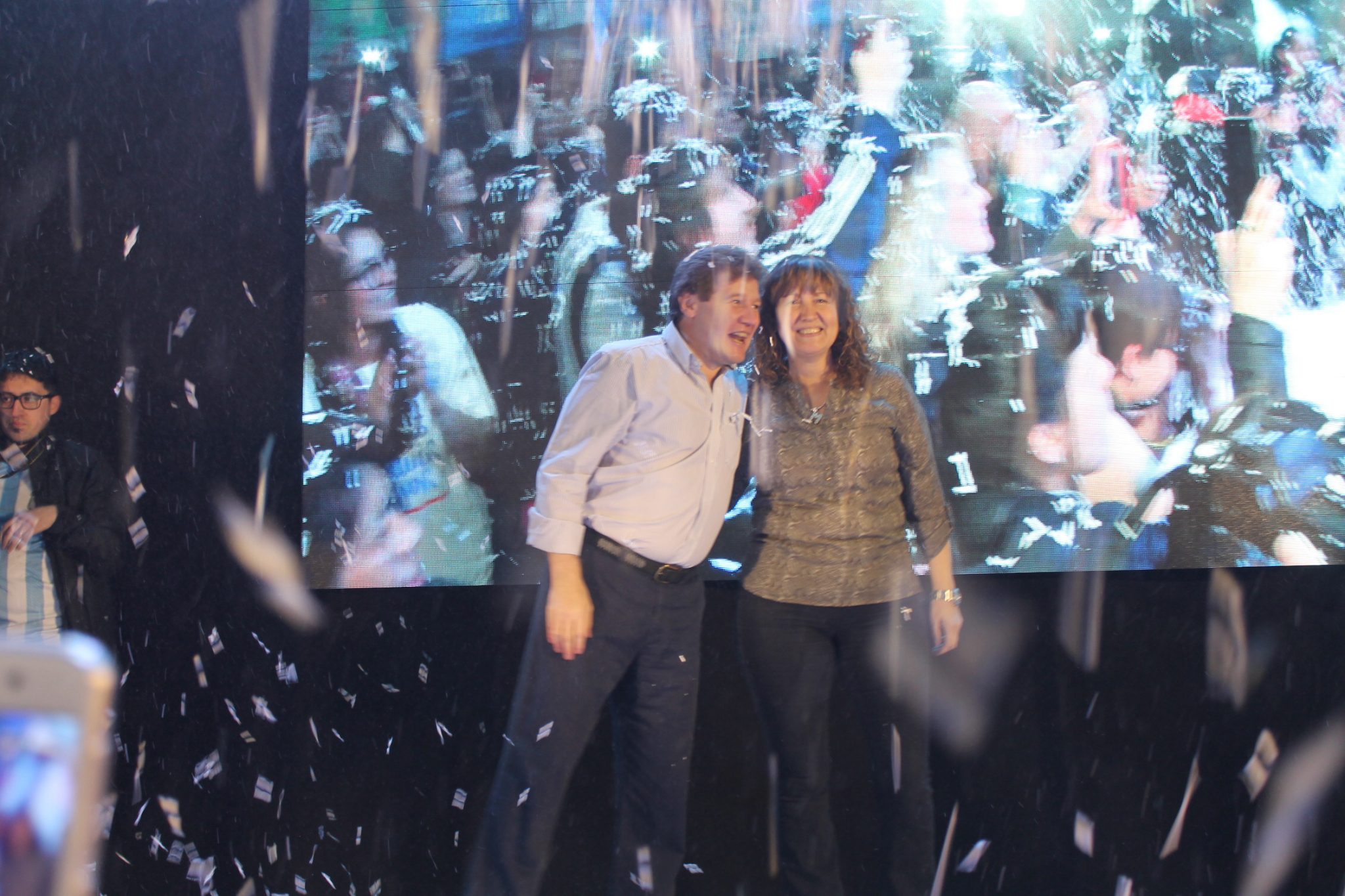 Ante un Gimnasio del Club Sportivo, colmado de militancia de los distintos partidos que lo acompañan, el intendente de Rio Grande presento su candidatura a la gobernación de la provincia acompañado de la Legisladora Monica Urquiza.
