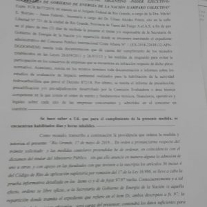 Bajo la caratula, Melella Adrian Gustavo c/Estado Nacional, sobre amparo colectivo, la Jueza Federal de Rio Grande, Dra. Mariel Borruto envió 2 oficios al Observatorio de Energía, Tecnología e Infraestructura para el desarrollo (OETEC) y la Secretaria de Energía de la Nación a fin de que remitan toda la documentación con que cuenten para evitar la participación en concursos de empresas que se encuentren infracción respecto de dicho plexo normativo