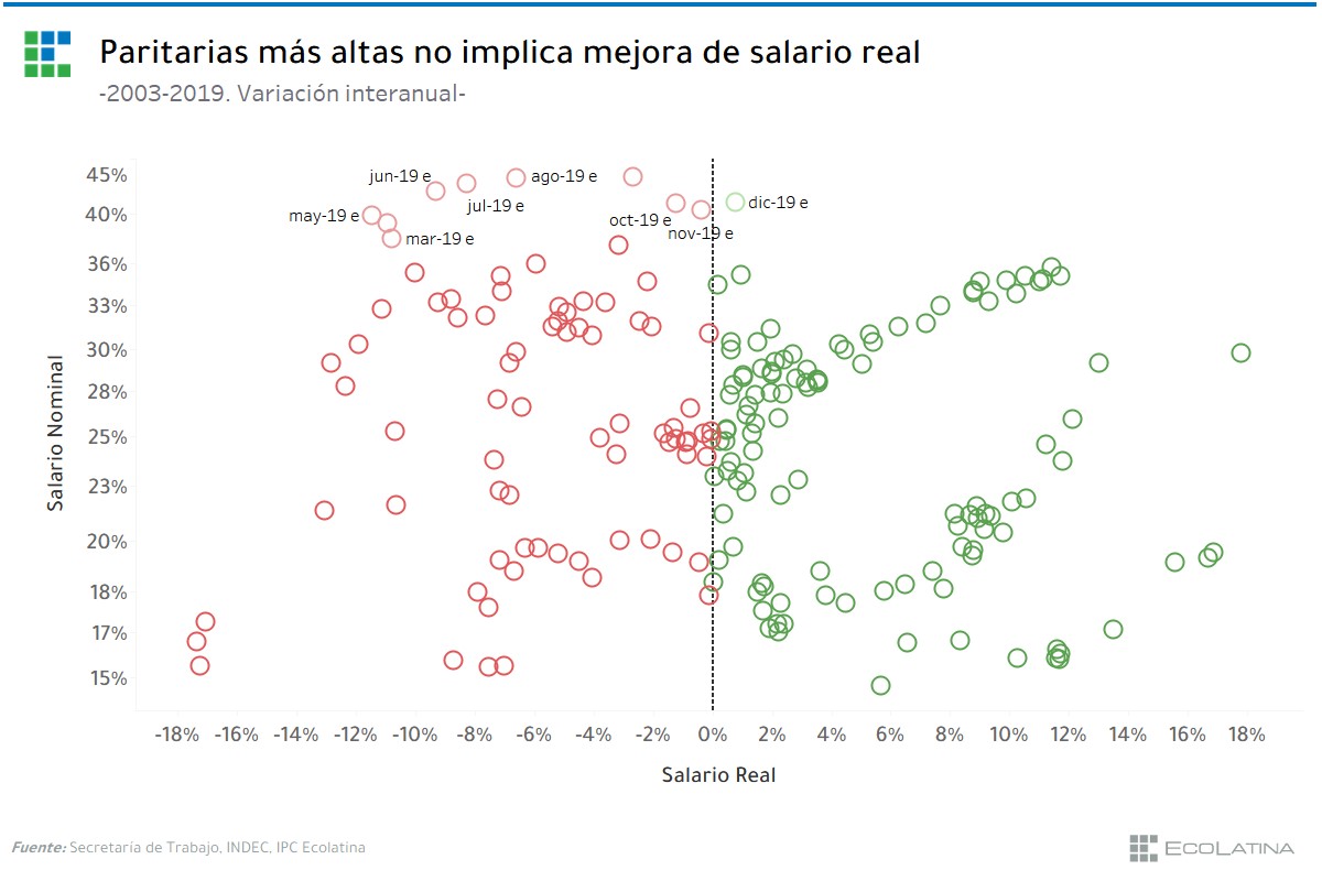 Una mayor nominalidad es el riesgo al que se expone el gobierno al respaldar este tipo de acuerdos, lo que parece ser la última carta para afrontar las elecciones. Sin embargo, supeditar los acuerdos salariales a la inflación pasada, en un intento de fijar el salario real bajo condiciones macroeconómicas muy inestables, puede ser peligroso al menos por dos motivos.