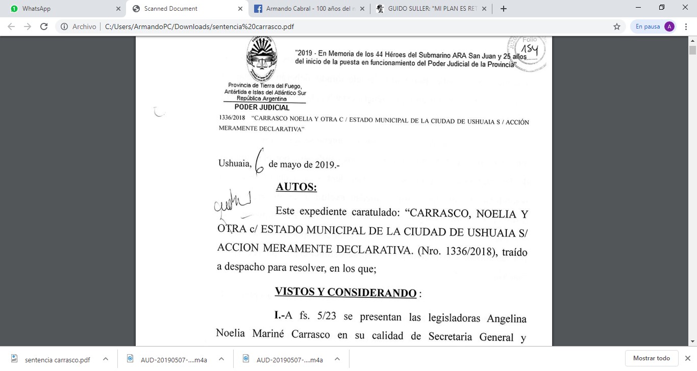 En su sentencia el magistrado resolvió establecer que en el escrutinio definitivo de los próximos comicios municipales de la ciudad de Ushuaia -16 de junio de 2019- y los sucesivos, las preferencias se computarán de manera independiente en relación a cada uno de los géneros. (Instituidas en los art. 217 y 218 de la Carta Orgánica Municipal, y el 36 y 37 de la Ordenanza Nº 2578/03).