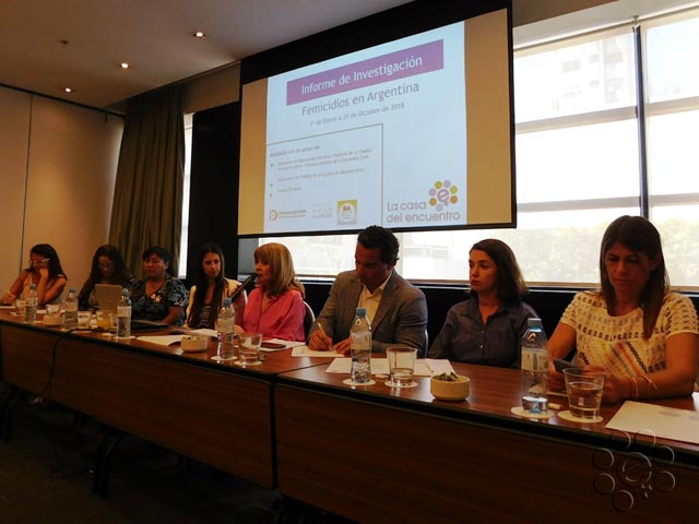 Posteriormente, Ada Rico y Clara Santamarina comenzaron la presentación del “Informe de Investigación de Femicidios en Argentina” para el periodo 1º de Enero al 31 de Octubre de 2018, con datos recopilados de Agencias informativas y 120 diarios de distribución nacional y/o provincial así, como el seguimiento de cada caso en los medios.