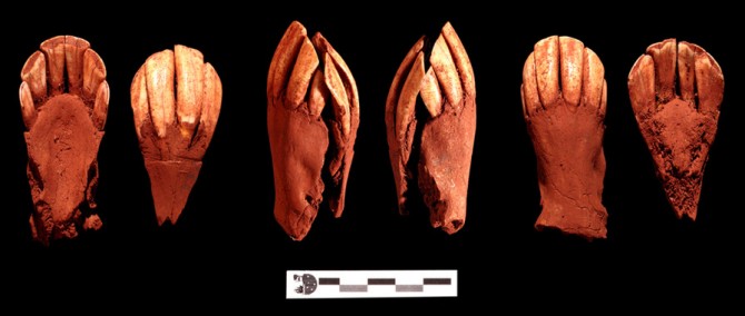 “Los pares de mandíbulas de guanaco son notables. Aparecieron juntos de a dos y uno tiene incluso evidencias de amarre. Por el tipo de corte y el tamaño parece que su función era utilizarlos como picos, algo muy extraño”, asegura Prieto. En la literatura arqueológica no se encuentra nada parecido en ninguna parte del mundo.