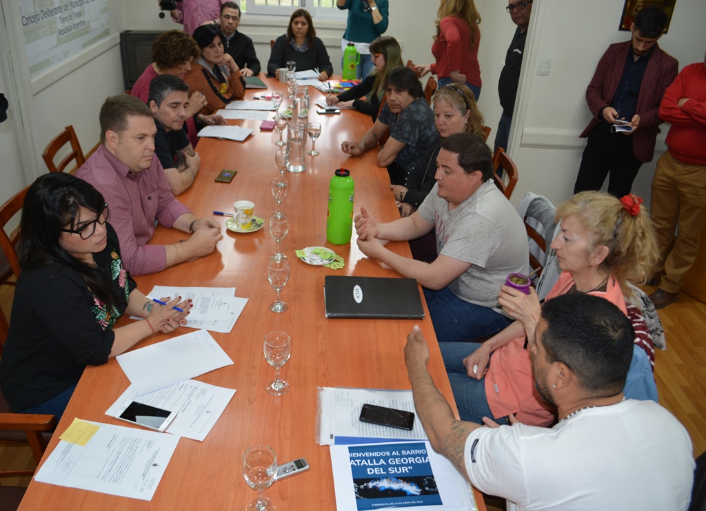 Río Grande.- Este miércoles se llevó adelante una reunión unificada de las comisiones de Presupuesto que preside la concejal María Eugenia Duré, y la comisión de Legislación e Interpretación que legisla el concejal Raúl von der Thusen, donde junto a las ediles Verónica González, y Miriam Mora, y los vecinos del barrio Batalla Georgias del Sur analizaron las distintas problemáticas que tiene el barrio, entre ellas la necesidad de contar con cordones cuneta, que las arterias del barrio cuenten con señalizaciones, como así también solicitaron que el transporte público de pasajero pase por el barrio.