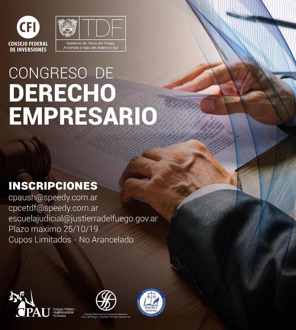Los días 31 de octubre y 1 de noviembre tendrán lugar desde las 9 de la mañana en el Hotel Las Hayas de Ushuaia las Jornadas “Cuestiones actuales del Derecho Empresarial” organizadas por el Gobierno de la Provincia, la Escuela Judicial del Poder Judicial de Tierra del Fuego y el Colegio Público de Abogados de Ushuaia, con el apoyo del Consejo Profesional de Ciencias Económicas y el financiamiento del Consejo Federal de Inversiones.
