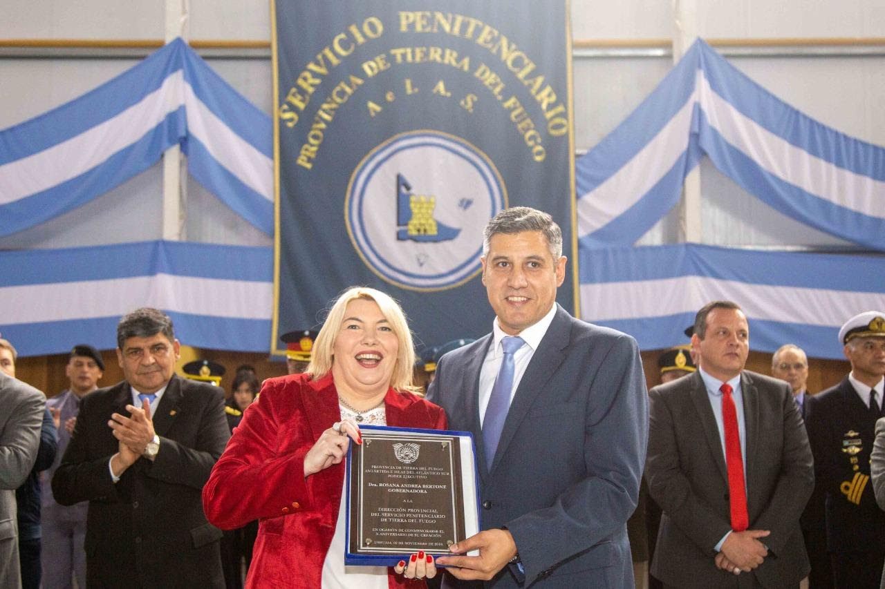 Este sábado la Gobernadora Rosana Bertone , junto al Director del Servicio Penitenciario Provincial, Claudio Cánovas, encabezaron la celebración por el décimo aniversario del Servicio Penitenciario en el gimnasio “Arq. Petrina” en la villa deportiva del barrio Río Pipo. También estuvo presente el Secretario de Estado de Seguridad, Javier Eposto.