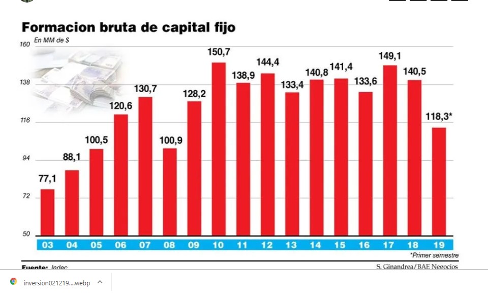 En septiembre, el Instituto de Trabajo y Economía de la Fundación Germán Abdala (ITE-FGA) midió otro desplome de 10,8% interanual. “De mantenerse en ese nivel los últimos tres meses del año, la inversión caería en torno al 14% en 2019, dejando un nivel 10% menor al de diciembre de 2015”, señala la entidad.