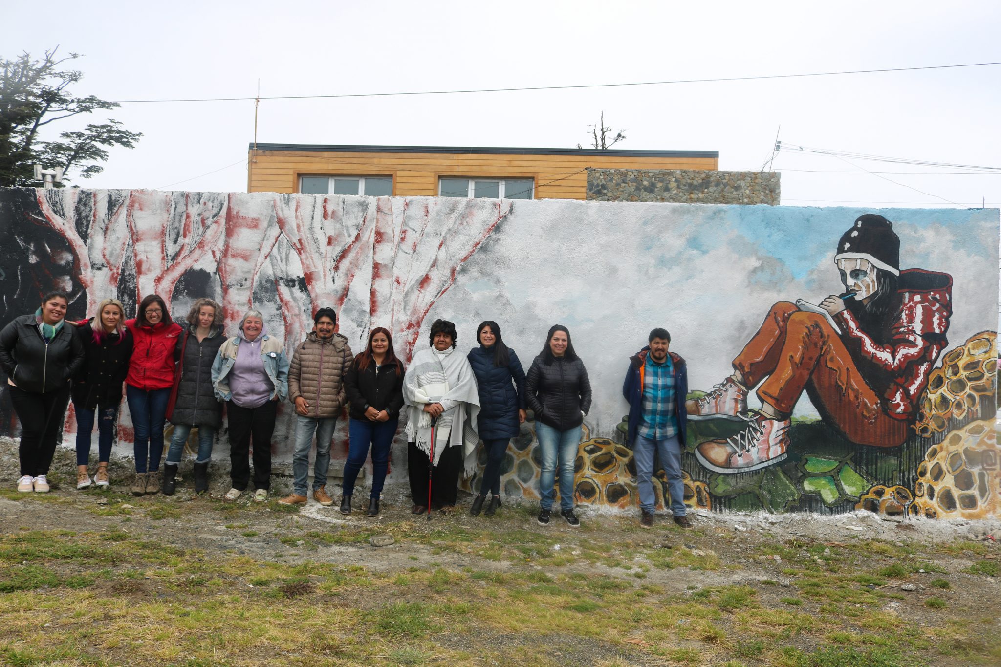 Esta mañana visitamos los murales situados en distintos puntos de la Ciudad donde los artistas llevaron a cabo en estos cinco días la temática de los Pueblos Originarios en representación a los Shelk’nam.