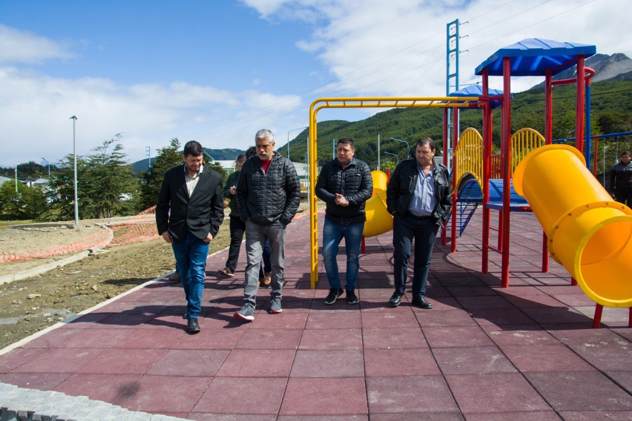 Los funcionarios municipales recorrieron también el paseo costero de la ciudad y los avances en la plaza Cívica, sitio emblemático de la ciudad de Ushuaia.