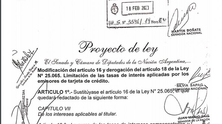 «Los costos de financiamiento totales producto de la financiación del saldo, en ningún caso podrán superar al que fije el Banco Central a tal efecto», agrega el proyecto.