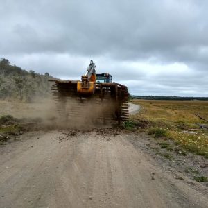 “Hoy tenemos dos máquinas trabajando en la Ruta 3 norte, en San Sebastián, tenemos máquinas trabajando en la Ruta 18, en la zona del Lago Yehuin y tenemos otro equipo trabajando en la ruta de San Pablo”, detalló el funcionario.