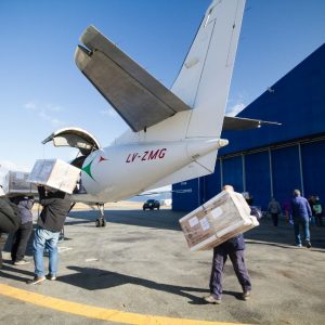Viern 27/03/2020.- En horas de la tarde de este viernes arribó a la ciudad de Ushuaia el primer avión sanitario contratado por el Gobierno de la Provincia de Tierra del Fuego, Antártida e Islas del Atlántico Sur para abastecer a la isla de insumos médicos, medicamentos y vacunas provenientes de la ciudad de Buenos Aires.