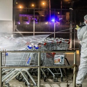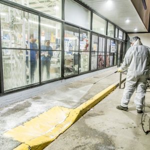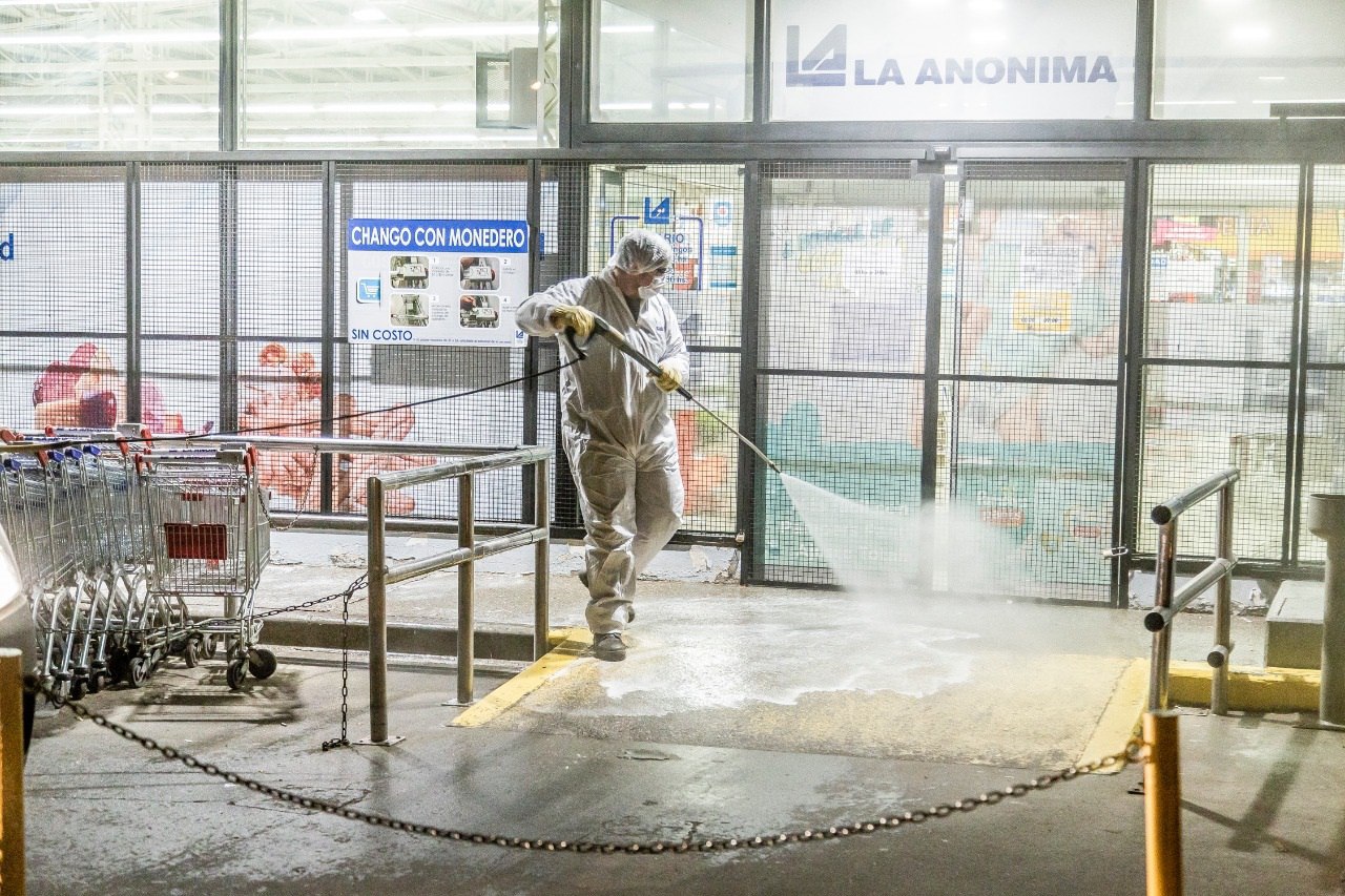 Asimismo, se desinfectaron los supermercados de la ciudad, tanto las entradas como los carritos que son utilizados por los vecinos, garantizando que uno de los puntos críticos de contacto, como son los barrales, queden desinfectados. Del mismo modo se hizo en las distintas sucursales bancarias, y en las garitas de colectivos.