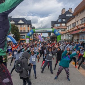 Previo a la largada se realizó el calentamiento con una clase de zumba a cargo de las profesoras Valeria Miranda y Lucía Vargas.