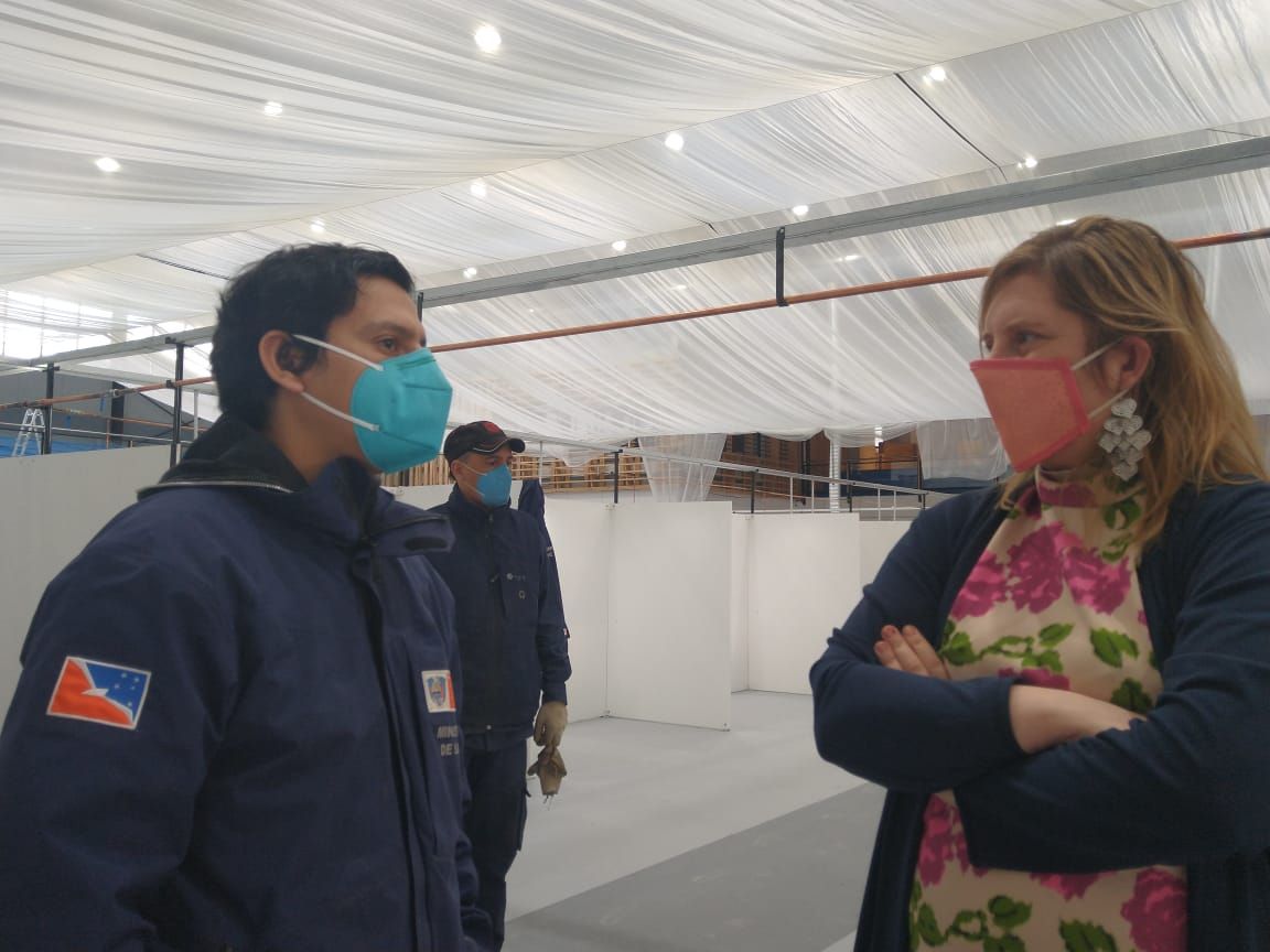 La ministra de Salud, Judit Di Giglio, inspeccionó -este miércoles- las instalaciones del gimnasio “Cochocho Vargas” de Ushuaia que fue adaptado para que funcione un ‘Hospital de Campaña’ para atender a los pacientes con COVID-19 ante un eventual desborde de la capacidad de atención de los establecimientos de salud existentes.