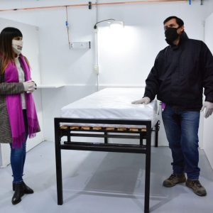 También fueron colocadas las 63 camas que fueron diseñadas por trabajadores municipales de servicios públicos, ubicadas dentro de cada uno de los boxes destinados a aquellas personas que puedan llegar a contraer el COVID-19 y necesiten internación.
