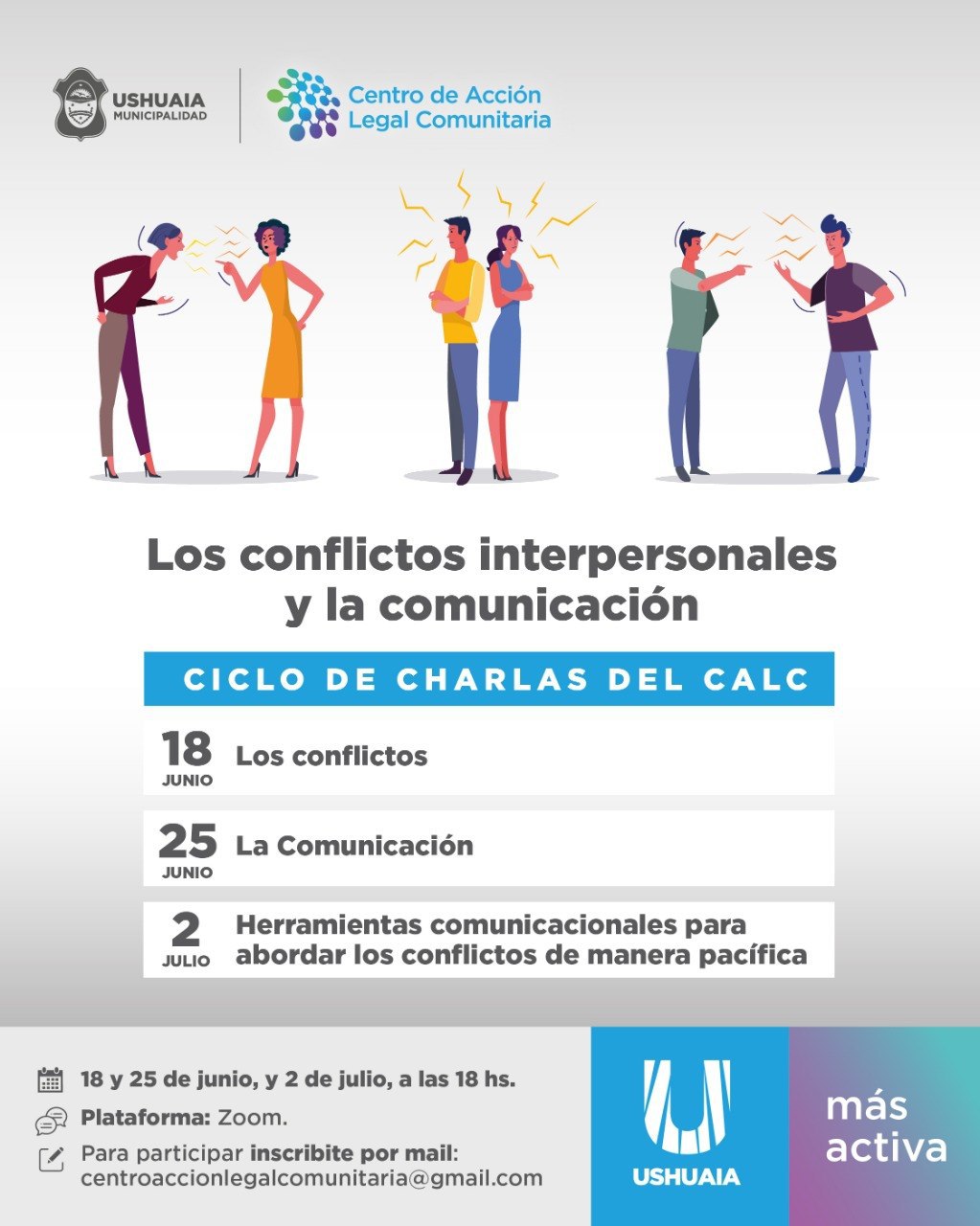 Este ciclo de tres charlas, que pone a disposición de todos los vecinos y vecinas interesadas la Municipalidad de Ushuaia, tiene como objetivo pensar y reflexionar sobre los conflictos interpersonales en la vida cotidiana, cómo se generan y con qué herramientas se puede contar desde la comunicación para poder gestionarlos de manera pacífica y colaborativa.