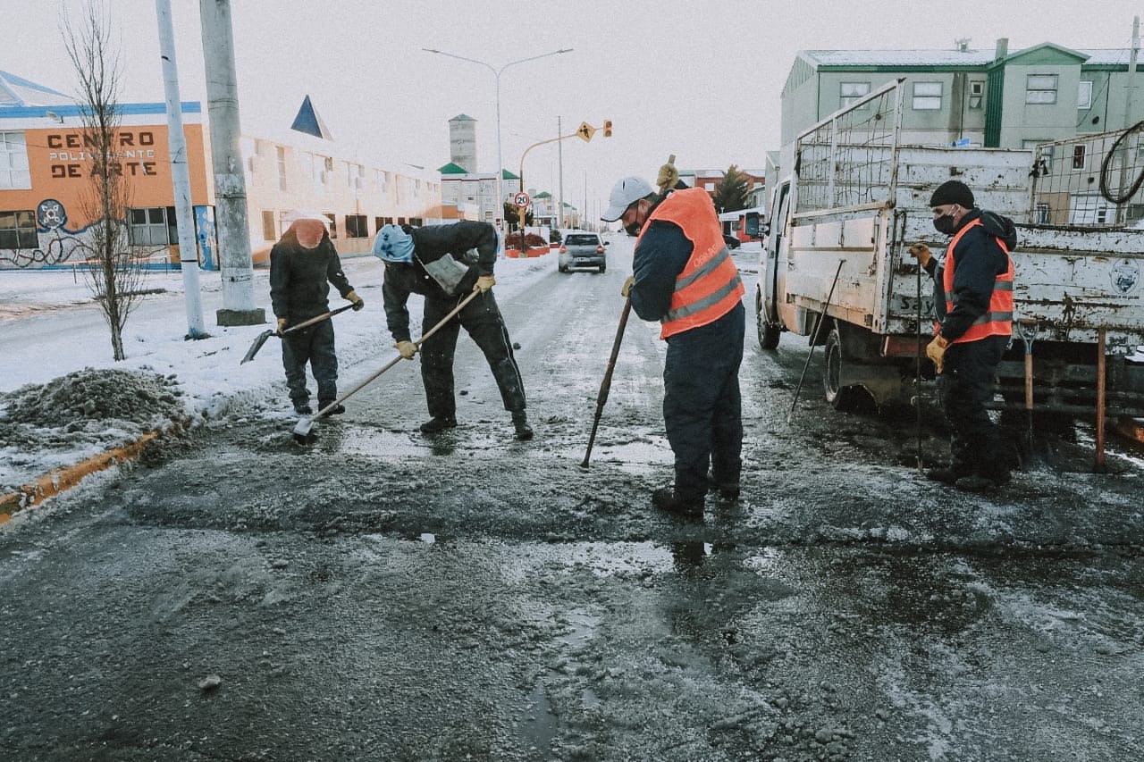 Juev 25/06/2020.- El Municipio se encuentra realizando tareas de deshielo y limpieza en lomas de burro, para lo cual ha dispuesto en simultáneo 10 cuadrillas de servidores públicos que están trabajando en arterias de distintos barrios.
