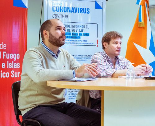 El Gobernador de Tierra del Fuego, Antártida e Islas del Atlántico Sur, Gustavo Melella, junto al ministro Jefe de Gabinete, Agustín Tita, a la ministra de Obras y Servicios Públicos, Gabriela Castillo, a la Presidenta del IPVyH, Leticia Hernández y al Secretario de Proyectos Integradores del Hábitat, Pablo Driussi mantuvo este jueves una videoconferencia con la ministra de Desarrollo Territorial y Hábitat de la Nación, María Eugenia Bielsa, para avanzar en la firma de un convenio destinado a implementar los programas federales Argentina Construye y Argentina Construye Solidara.