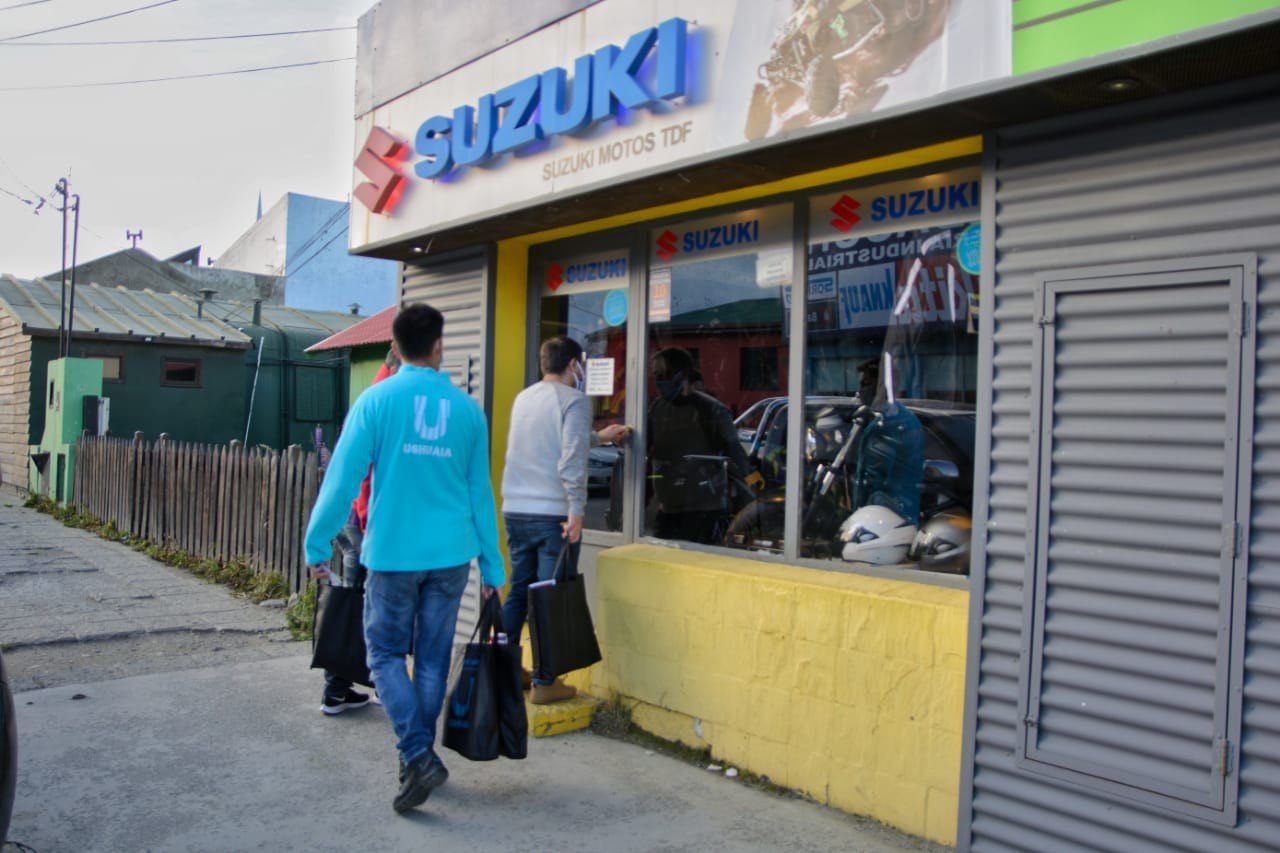 Viern 05/06/2020.- Continuó la entrega de kits sanitizantes a comercios de la ciudad por parte de la Municipalidad de Ushuaia, a través de los promotores de Salud y las distintas Secretarías y áreas que se suman a la tarea de llegar a cada local comercial que haya abierto las puertas para la atención al público.