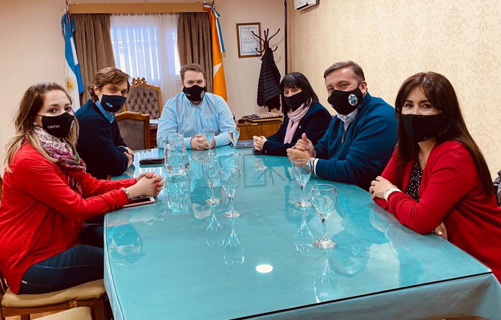 Río Grande.- Este miércoles en el despacho de la Presidencia, el titular del Concejo Deliberante Raúl von der Thusen, junto a los ediles Pablo Llancapani, y Cintia Susñar, recibieron a los Legisladores del bloque de la UCR Liliana Martínez Allende, y Federico Sciurano, y a la presidente del Comité Local Río Grande Andrea Rodríguez, con quienes dialogaron sobre las políticas llevada adelante en medio de la pandemia del coronavirus, la deuda de coparticipación, como así también en relación a la cuestión de género.