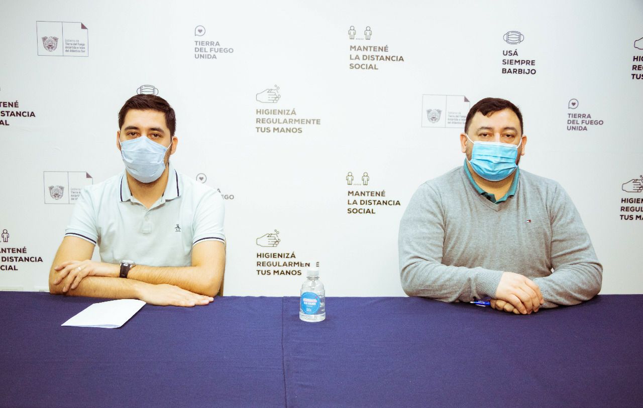 Juev 17/09/2020.- El Dr. Javier Barrios, Secretario de Gestión de Sistemas Sanitarios del Ministerio de Salud de la provincia de Tierra del Fuego AIAS junto al director provincial de Seguridad e Higiene en el Trabajo, Cristian Pérez, brindó una extensión del parte epidemiológico del día 16 de septiembre.