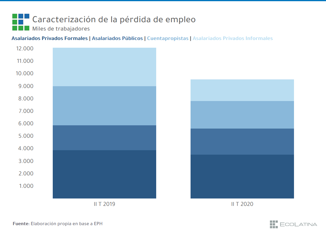Por este motivo, resulta más relevante analizar lo que sucedió con el empleo y vincularlo con la caída récord de la actividad observada y las restricciones de oferta presentes producto de la cuarentena/pandemia. Más importante aún, la pérdida de empleo ayuda a comprender la magnitud del impacto negativo sobre el gasto de los hogares y su composición el deterioro de los indicadores socioeconómicos.