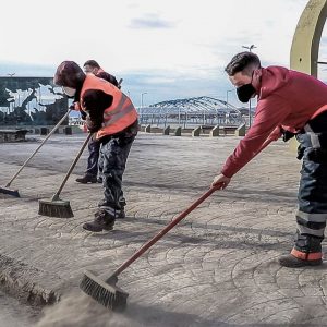 “Es un trabajo que hacemos todos los años al finalizar el invierno, como nos indicó el intendente Walter Vuoto, con la remoción de tierra y barro de los cordones y también de las veredas de los recorridos públicos. Hacemos esta tarea en forma conjunta las cuadrillas de trabajadores de Higiene Urbana municipal y la empresa Agrotécnica Fueguina”, afirmó De Marco.