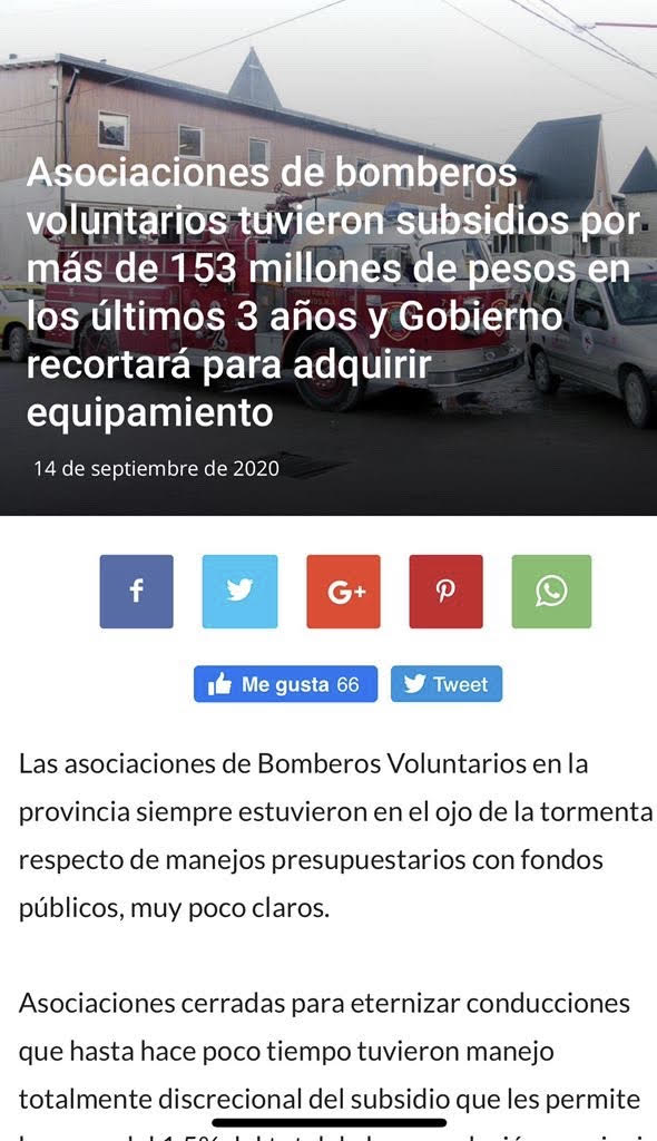 Juev 17/09/2020.- En algunos portales, según detallan por información brindada por el Gobierno provincial, los Cuarteles de bomberos de la provincia habrían cobrado 153 millones en los últimos 3 años.