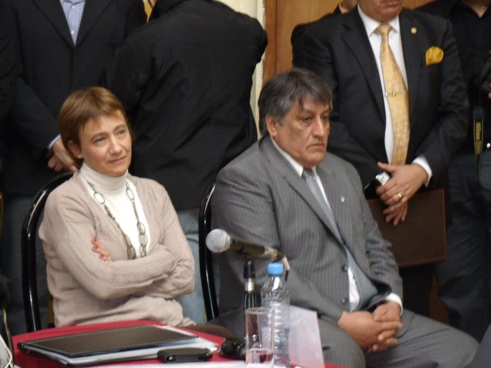No todo podía salir bien, la gobernadora fue retirada por una puerta posterior, mientras los agentes tiraban gases lacrimogenos y había empujones e insultos por la situacion general de la provincia.