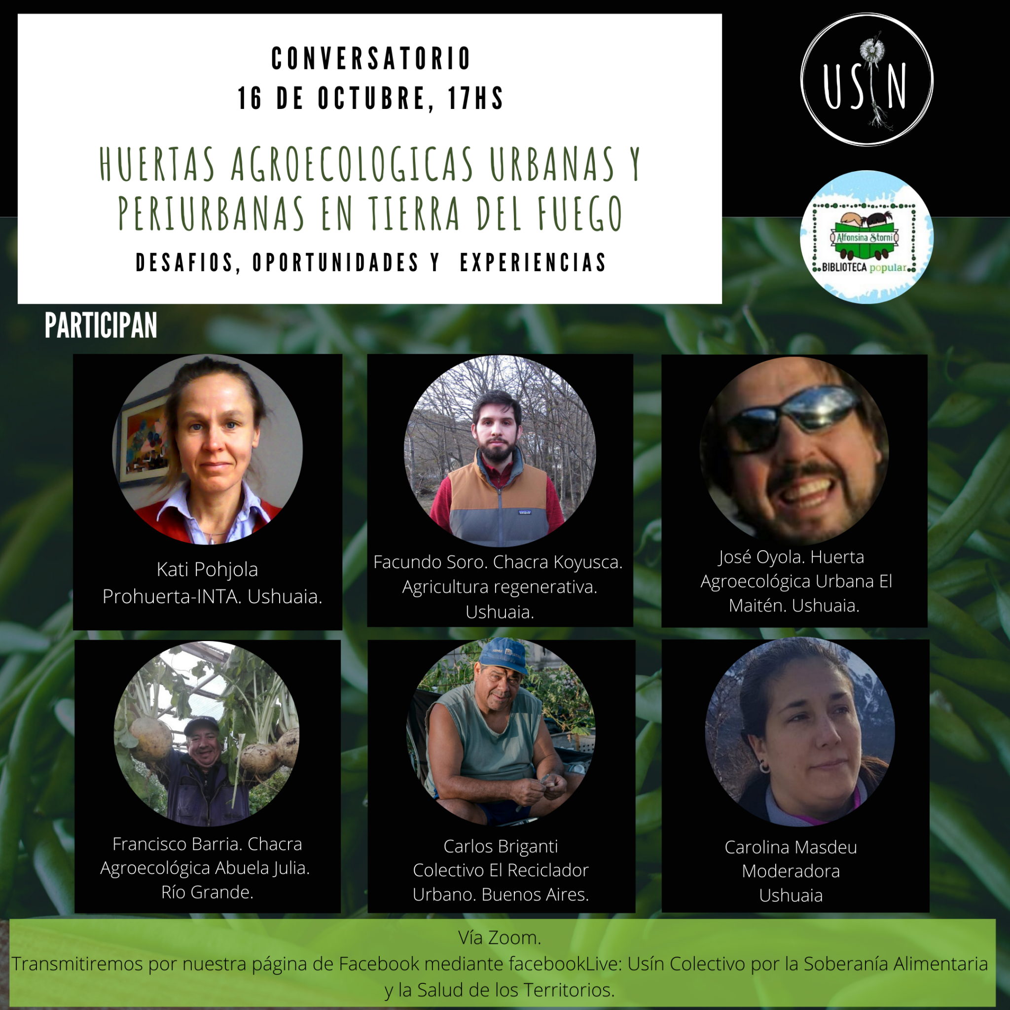 Moderado por Carolina Masdeu, el conversatorio contará con la participación de Kati Pohjola (Prohuerta INTA, Ushuaia); Francisco Barría (Chacra Agroecológica Abuela Julia, Río Grande); Facundo Soro (Chara Koyuska, Chacra Agroecológica y biodinámica. Agricultura Regenerativa, Ushuaia); José Oyola (Huerta Urbana El Maitén, Ushuaia) y Carlos Briganti (Colectivo el Reciclador Urbano, Autor del Libro: Una huerta en mi terraza, Buenos Aires).