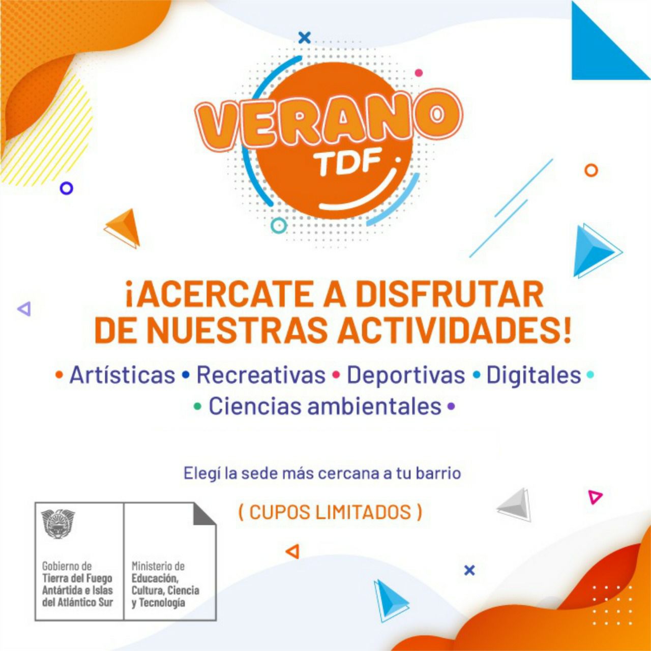 Rio Grande 23/12/2020.- El Ministerio de Educación, Cultura, Ciencia y Tecnología de la provincia de Tierra del Fuego AeIAS, junto con las Secretarías de Representación Política, Deporte y Juventud y el INFUETUR, llevarán adelante el Programa “Verano TDF”, el cual ofrecerá diferentes actividades artísticas, recreativas, deportivas, digitales y de ciencias ambientales, destinadas a niños y niñas hasta adultos mayores.