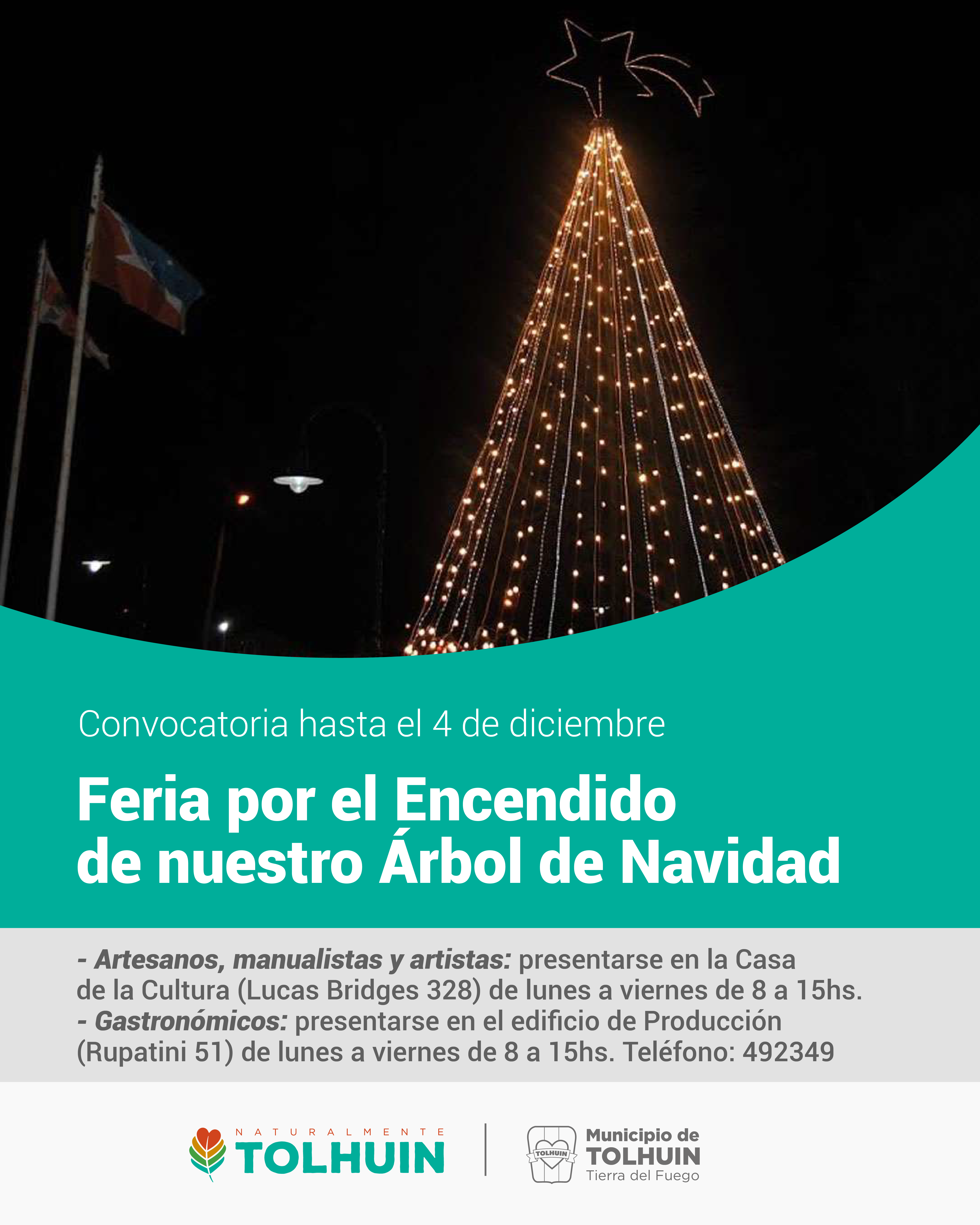 EL MUNICIPIO DE TOLHUIN CONVOCA A ARTESANOS Y GASTRONÓMICOS A PARTICIPAR DE LA FERIA POR EL ENCENDIDO DEL ÁRBOL DE NAVIDAD