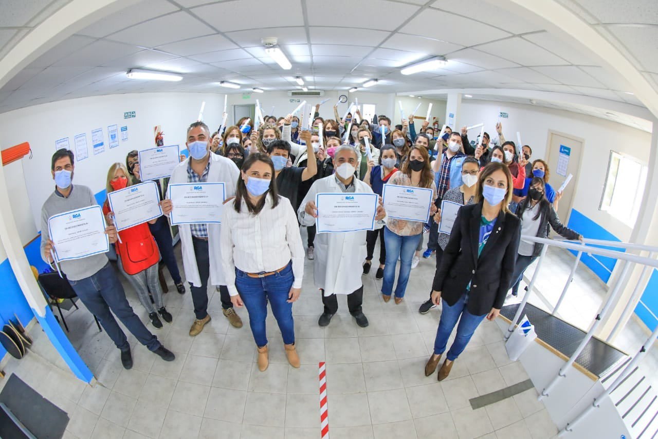 Al respecto, la secretaria de Salud del Municipio, Eugenia Cóccaro, comentó que “se hizo un reconocimiento a todo el personal de Salud municipal, a enfermeros, médicos, distintos profesionales de la salud, y al personal de maestranza, que prestó una importante colaboración en el marco de la pandemia”, y destacó que “es un orgullo para nosotros haber contado con estos profesionales, y haber aportado desde el Municipio todo lo posible en asistencia ante la situación de pandemia, desde los llamados telefónicos para notificación de los casos positivos de Covid, hasta la asistencia de todo aquel paciente no Covid que necesitaba controles o asistencia médica en los distintos Centros de Salud Municipales”.