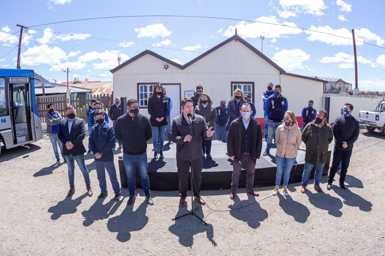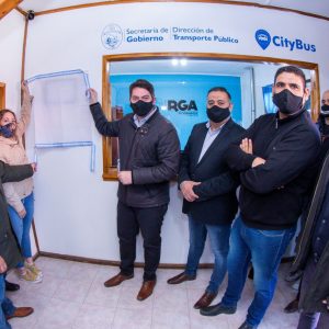 Acompañado por el Secretario de Gobierno, Gastón Díaz, y el secretario de Gestión Ciudadana, Gonzalo Ferro, el Intendente encabezó la apertura de una nueva oficina de transporte público en Margen Sur. También estuvieron presentes los concejales Cintia Susñar, Pablo Llancapani y Hugo Martínez; el titular de la empresa CityBus, Ariel Ledesma; y el secretario general de la Unión Tranviarios Automotor Río Grande (UTA), Juan Carlos Cuenca, y trabajadores de la empresa de transporte público de pasajeros.