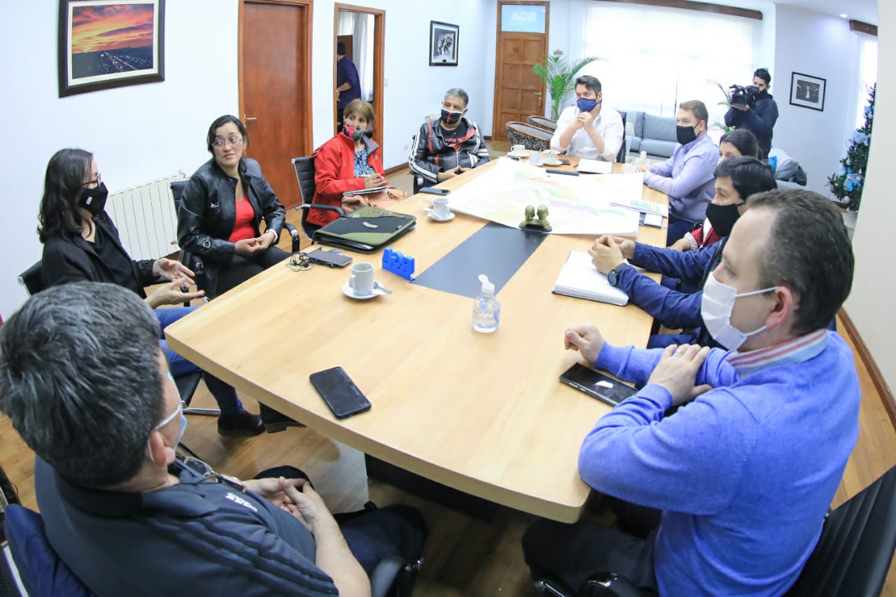 El intendente Martín Perez, junto al secretario de Gobierno, Gastón Díaz; la directora de Tierras, Verónica Moreno; el presidente del Concejo Deliberante, Raúl Von der Thusen; el presidente de Planeamiento Urbano y Obra Pública del Concejo Deliberante, Hugo Martínez; recibieron a parte de la Comisión Directiva de vecinos del barrio de Chacra XI para avanzar hacia una solución definitiva a los problemas habitacionales que atraviesan hace más de ocho años.