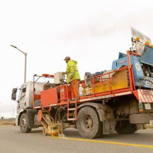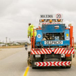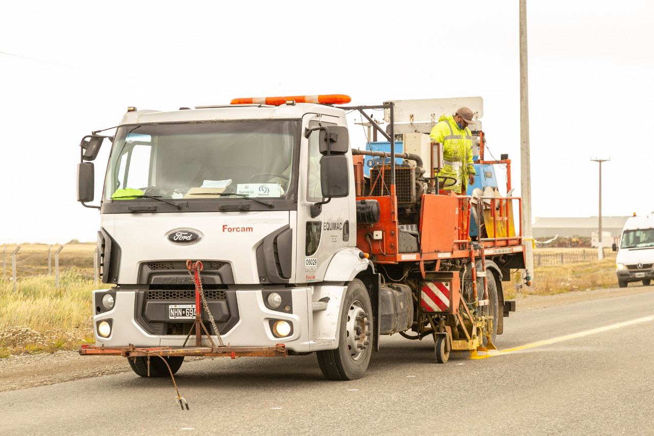Rio Grande 16/01/2021.- La Dirección Provincial de Vialidad del Gobierno de Tierra del Fuego AIAS se encuentra haciendo tareas de demarcación y señalización en la Ruta N°3. En este caso, se trabajó en el tramo que va desde la rotonda de Circunvalación hasta el Cristo, una zona caracterizada por un gran flujo vehicular y carente de señalética vial.