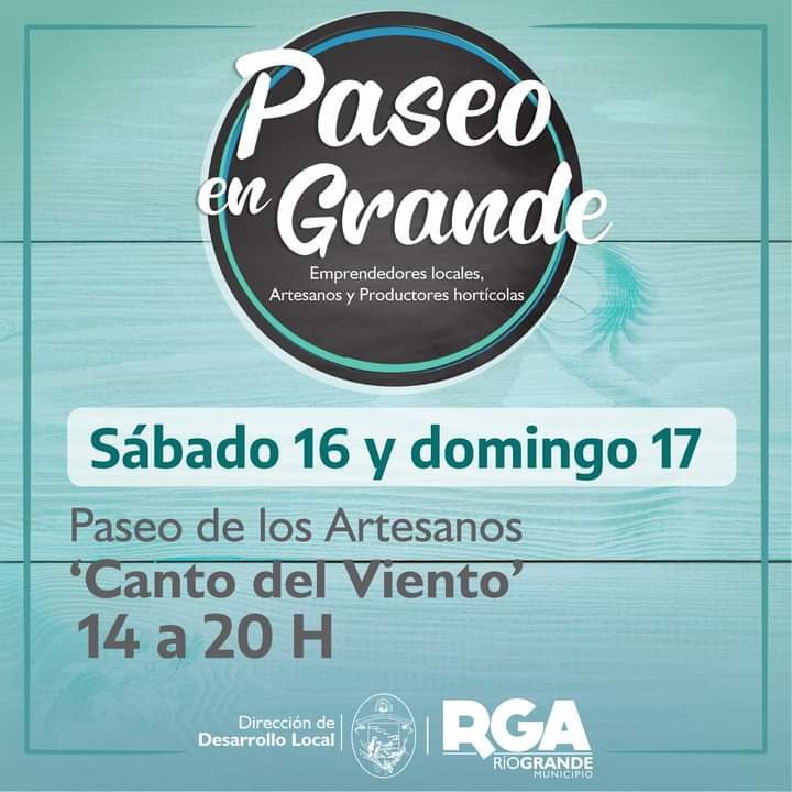 A través de la Secretaría de Desarrollo Económico y Ambiente, el Municipio de Río Grande invita a los vecinos y vecinas a disfrutar y aprovechar de la feria de emprendedores y artesanos “Paseo en Grande”, la cual se desarrollará los próximos fines de semana de enero, de 14 a 20 horas, en el Paseo Canto del Viento (Fagnano 650).
