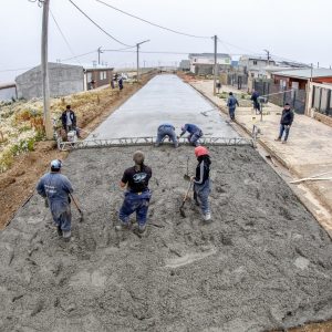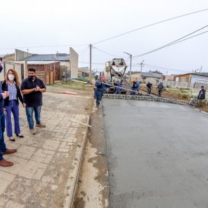 El intendente Martín Perez, junto a la secretaria de Planificación, Inversión y Servicios Públicos, Silvina Mónaco, estuvo presente en los trabajos de hormigonado sobre la calle Madre Teresa de Calcuta, en el barrio CGT.