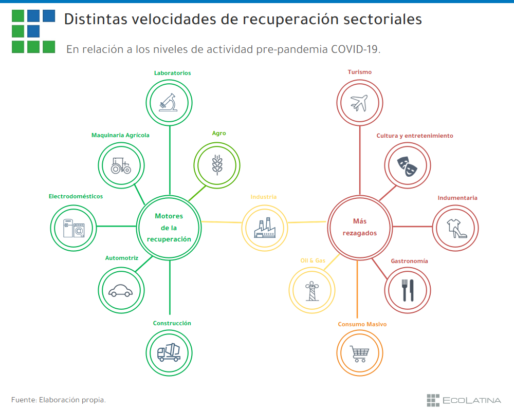 Los sectores más castigados en la era COVID-19, turismogastronomíaentretenimientocultura y servicios personales seguirán operando por debajo de la pre-pandemia, incluso cuando la vacuna llegué masivamente a la población y las restricciones se relajen sensiblemente. En este sentido, es probable que la recuperación total en estos servicios no se observe hasta, por lo menos, 2022.