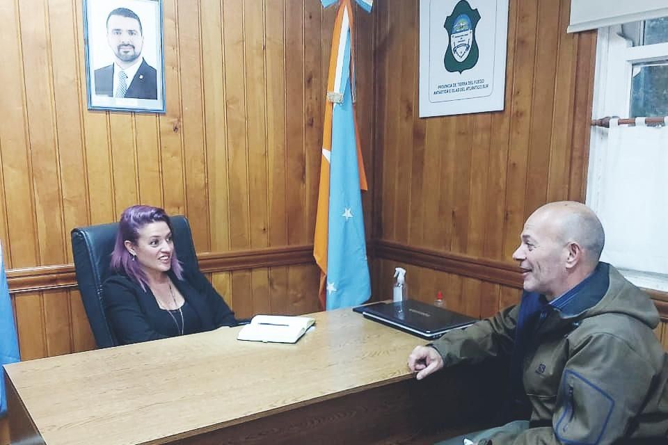 Ushuaia 26/03/2021.- La secretaria de la Mujer de la Municipalidad de Ushuaia, Noelia Trentino Martire, se reunió con el titular de la Delegación de ANSES en la ciudad, César Colantonio, para articular acciones conjuntas, entre ellas la implementación del Programa Acompañar.