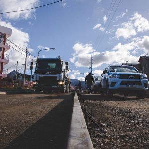 Ushuaia 31/03/2021.- La Municipalidad de Ushuaia, por medio de la Secretaría de Planificación e Inversión Pública, sigue avanzando en la obra de hormigonado de la calle Formosa, frente a las nuevas viviendas del Procrear.
