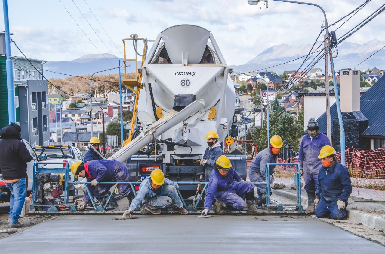 Ushuaia 31/03/2021.- La Municipalidad de Ushuaia, por medio de la Secretaría de Planificación e Inversión Pública, sigue avanzando en la obra de hormigonado de la calle Formosa, frente a las nuevas viviendas del Procrear.