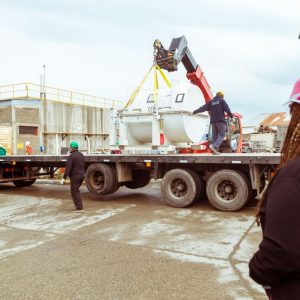 La semana pasada arribó al Puerto de Ushuaia el barco containero que trasladó desde Houston -Estados Unidos- el rotor (turbina de potencia) del generador principal Rolls Royce de la planta generadora de la Dirección Provincial de Energía y este lunes se procedió a concretar el traspaso del equipo a las instalaciones eléctricas de la DPE