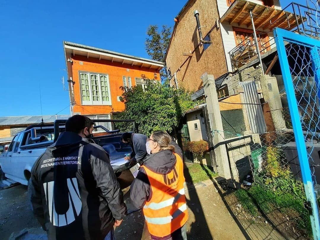 Ushuaia 04/04/2021.- La Secretaría de Hábitat y Ordenamiento Territorial de la Municipalidad de Ushuaia lleva adelante trabajos en conjunto con los vecinos y vecinas en los barrios del sector del KyD, en el marco del reordenamiento y regularización de la zona.