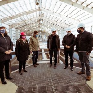 El Gobernador de la Provincia, Gustavo Melella junto a la Vicegobernadora, Mónica Urquiza y el Ministro de Obras Públicas de Nación, Gabriel Katopodis; recorrieron este miércoles la planta de pre tratamiento de efluentes cloacales de Bahía Golondrina de Ushuaia, la cual se encuentra en pleno funcionamiento.